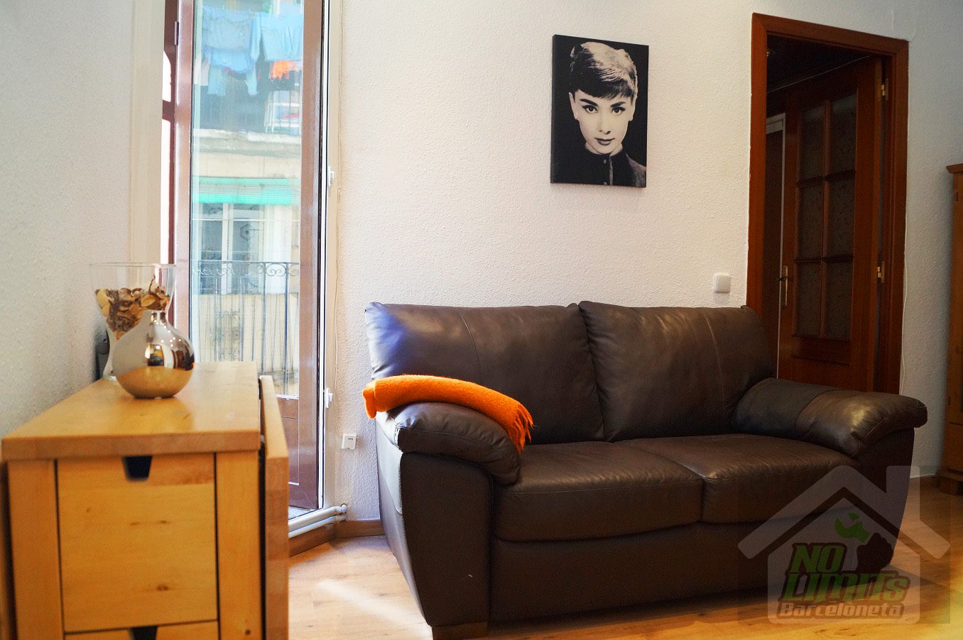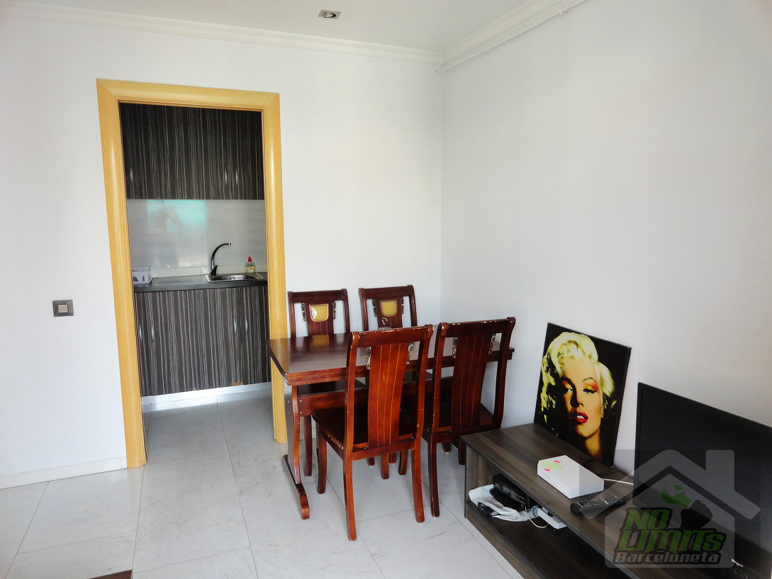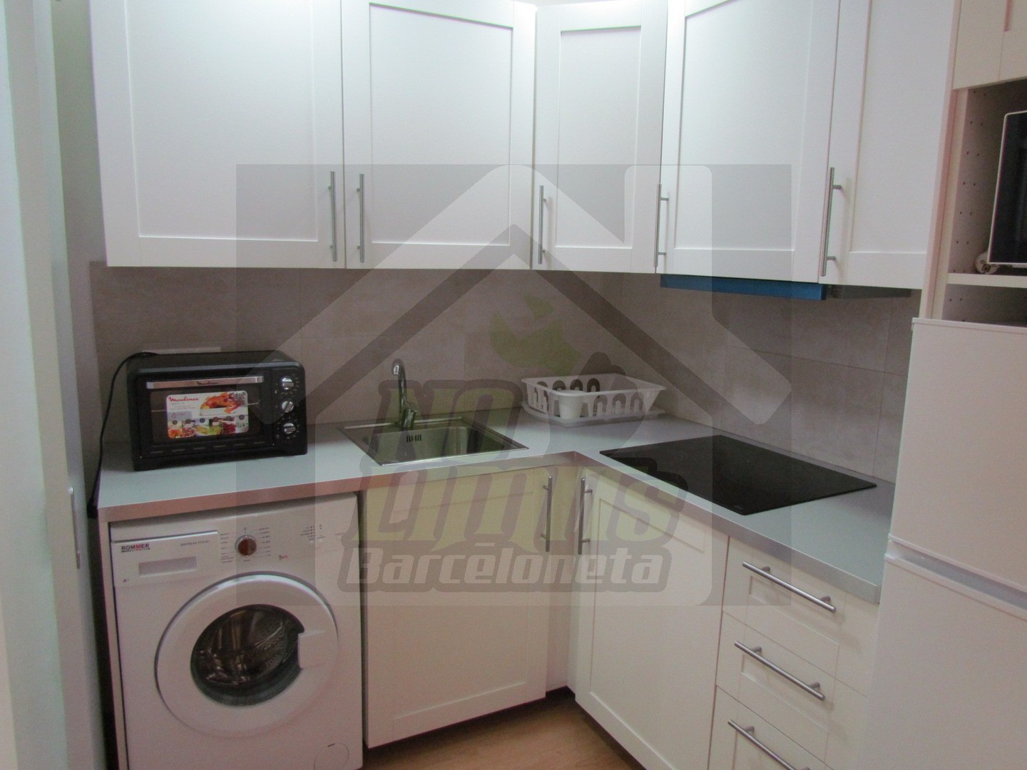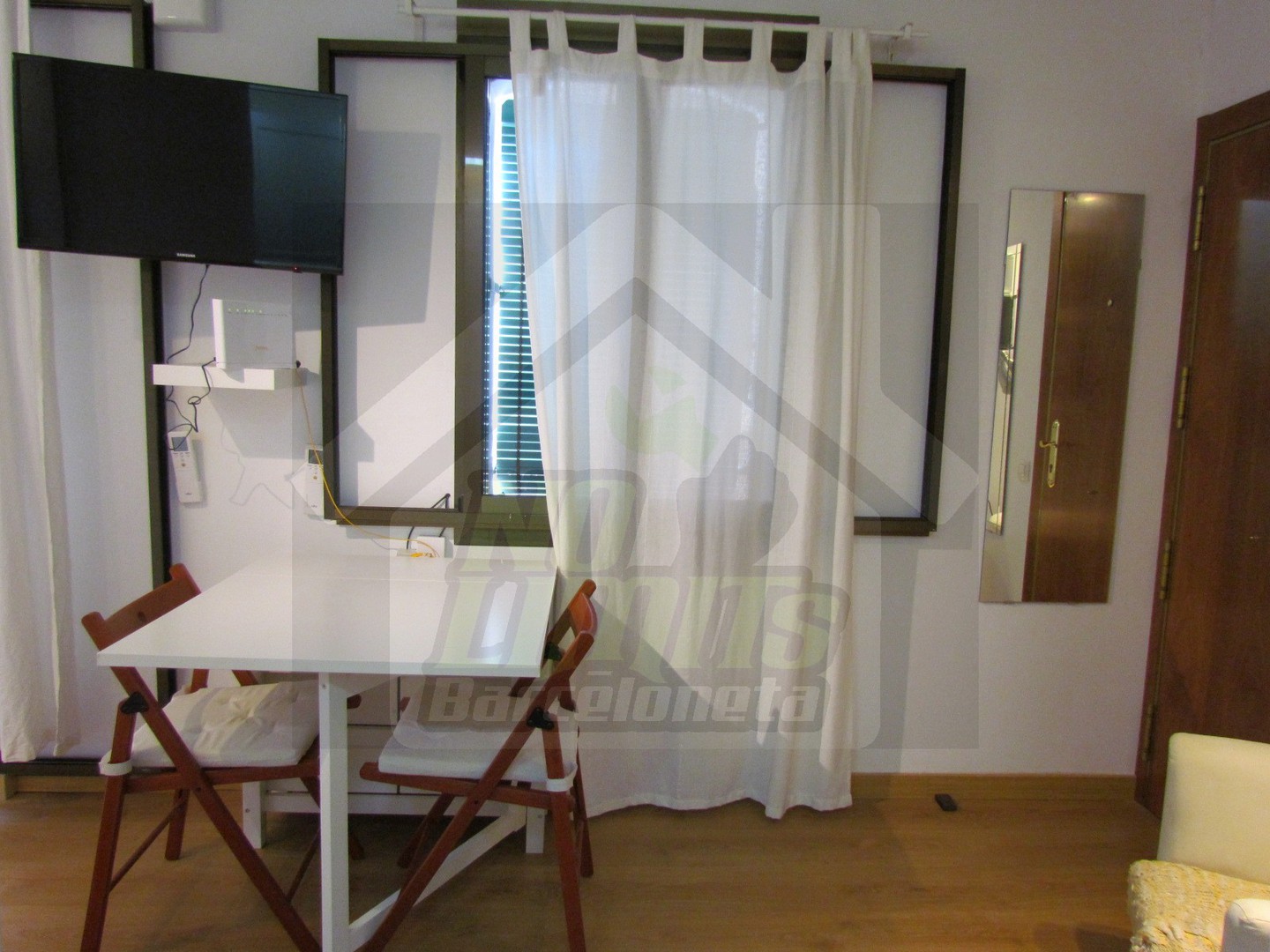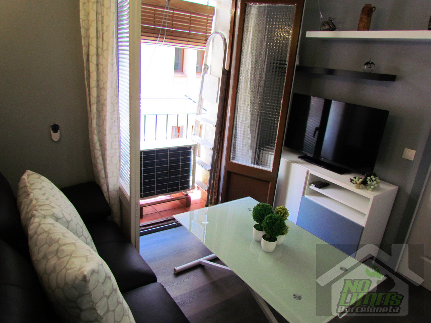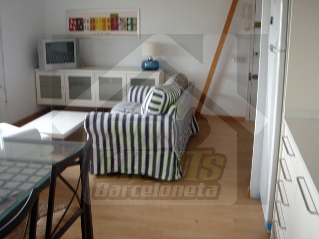 Good flat with 1 double room located near the Barceloneta Market, with all kind off shops and services around. American kitchen, totally equipped (including oven and dishwasher). Saloon with sofa bed, a/c and TV. Bathroom is in good shape. Small room with laundry machine and cleaning accessories. 4th floor without elevator.