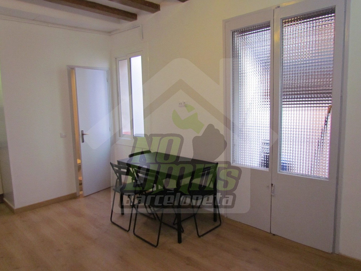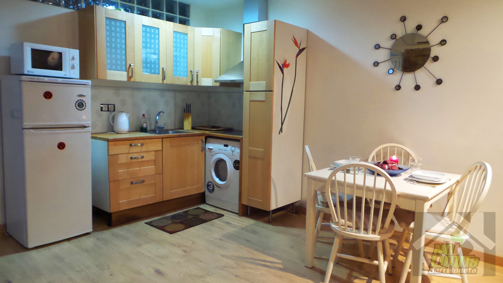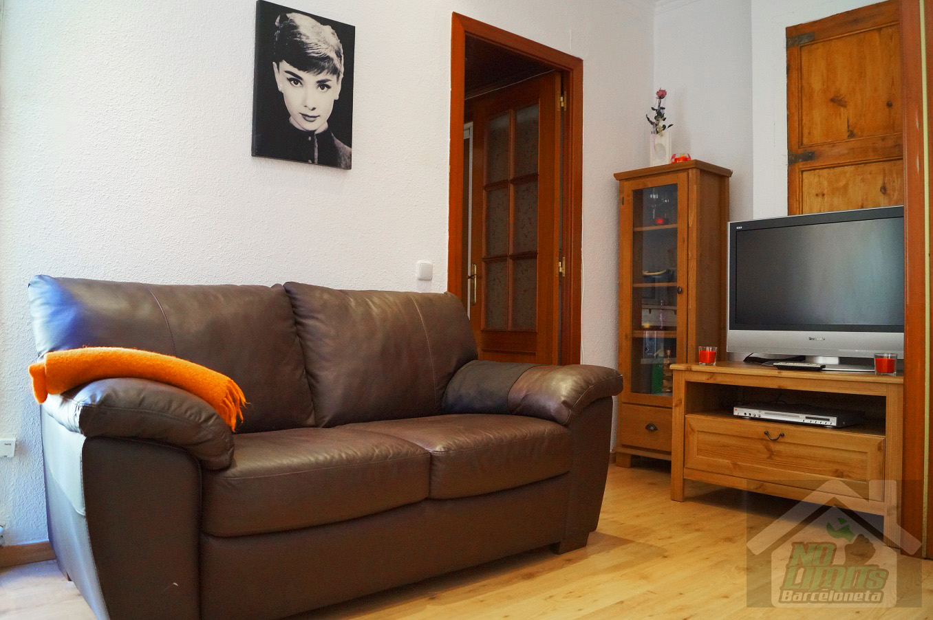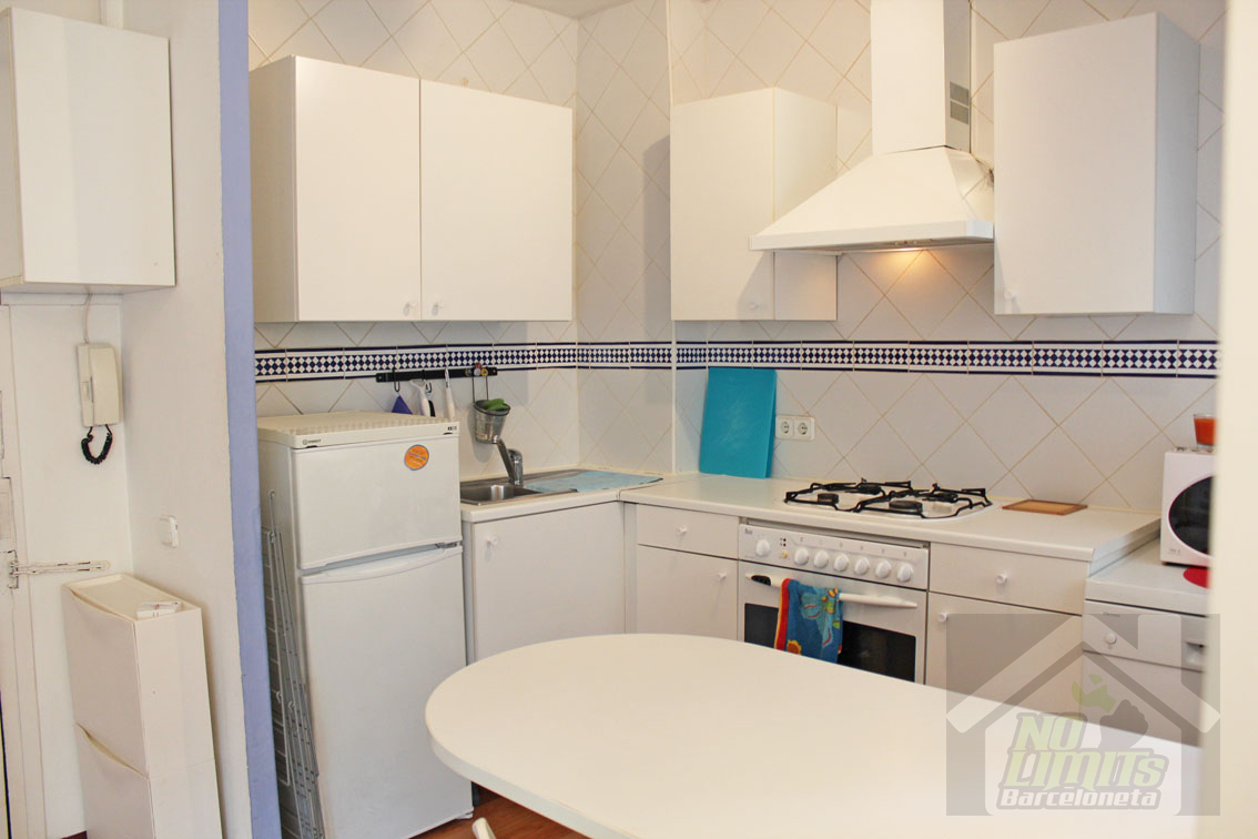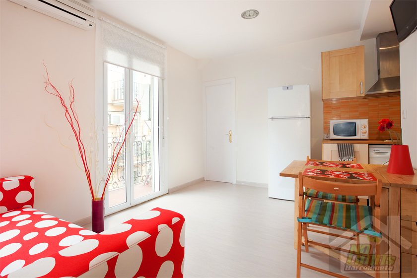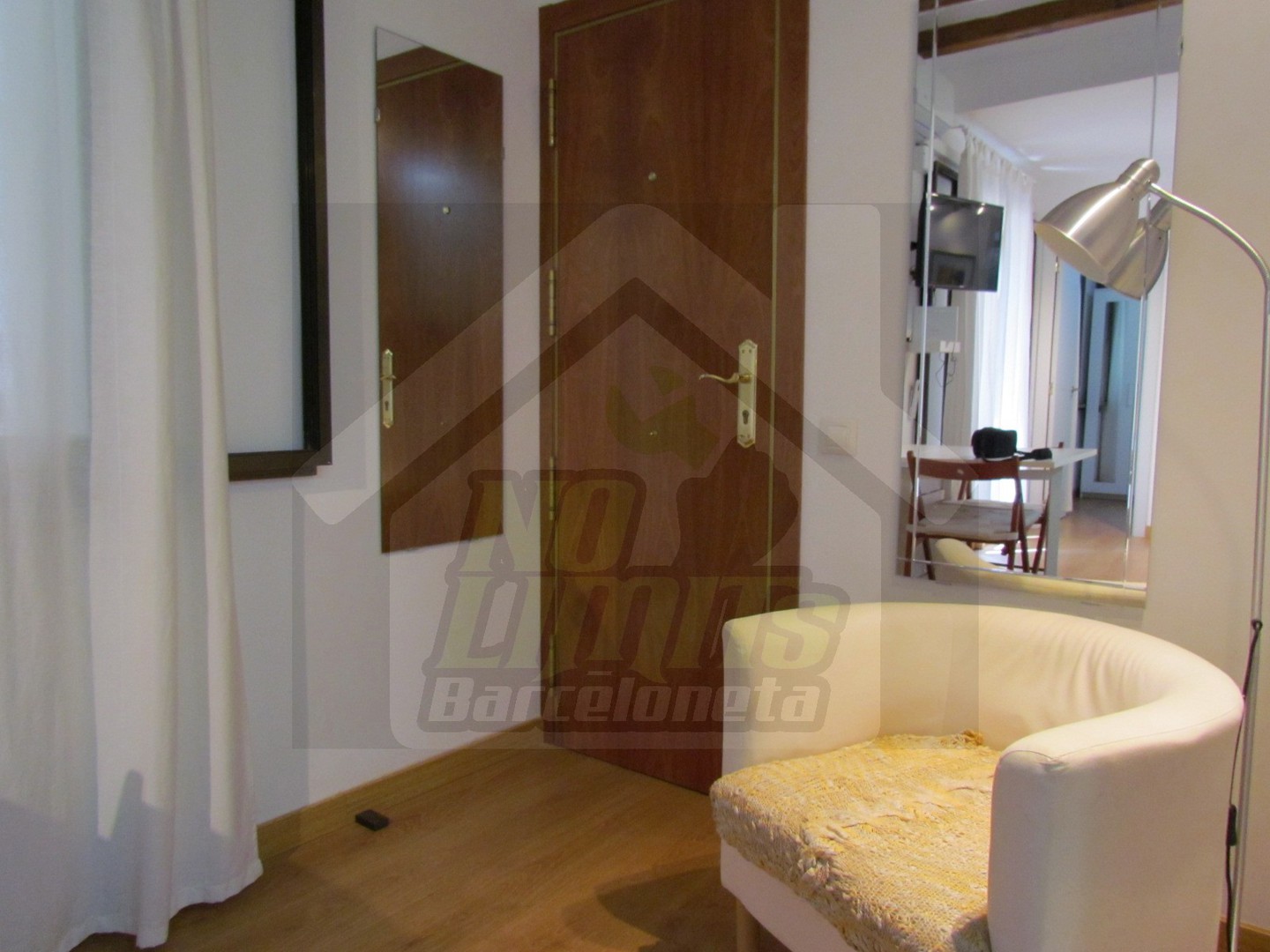 Good flat with 1 double room located near the Barceloneta Market, with all kind off shops and services around. American kitchen, totally equipped (including oven and dishwasher). Saloon with sofa bed, a/c and TV. Bathroom is in good shape. Small room with laundry machine and cleaning accessories. 4th floor without elevator.