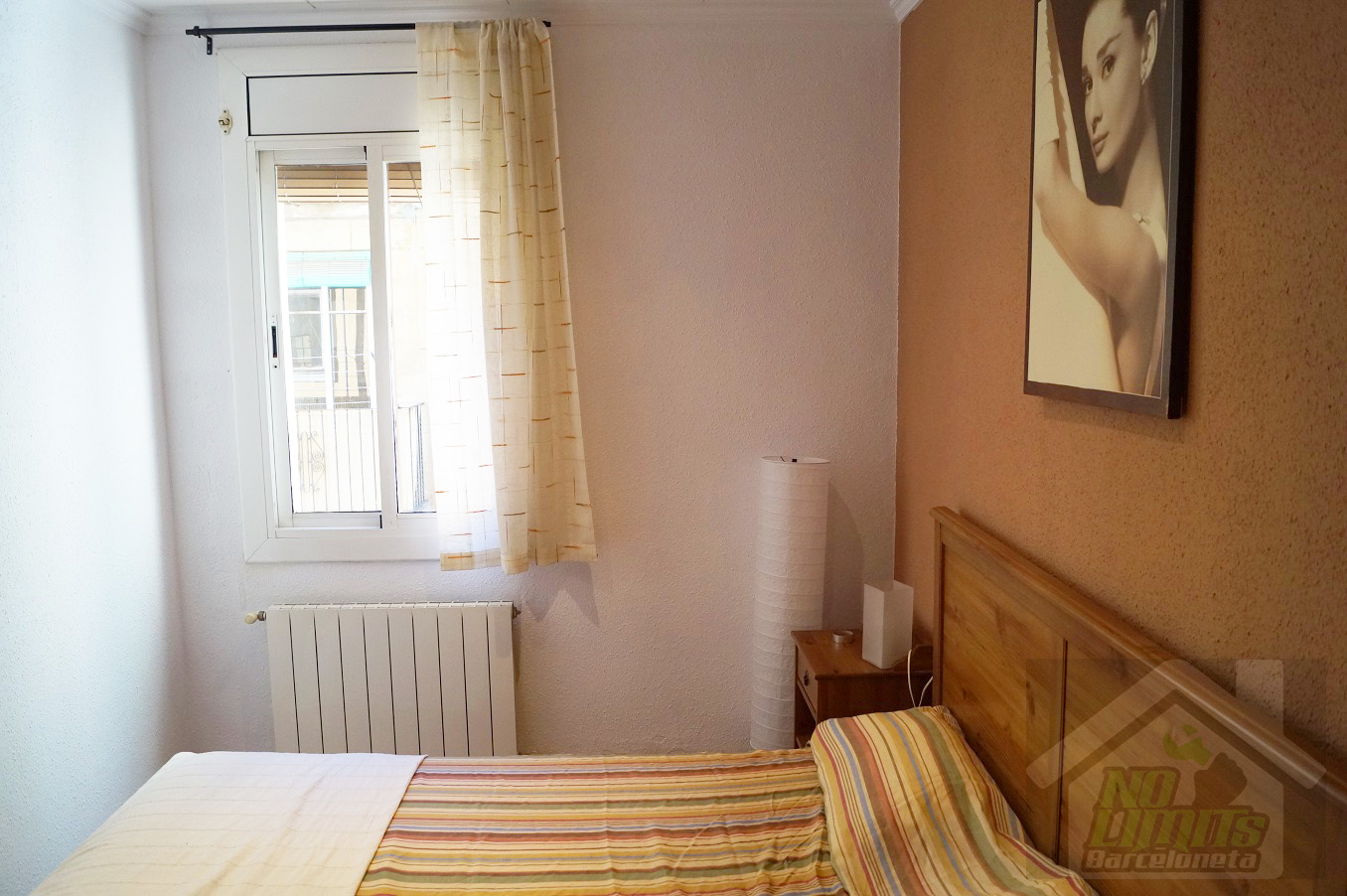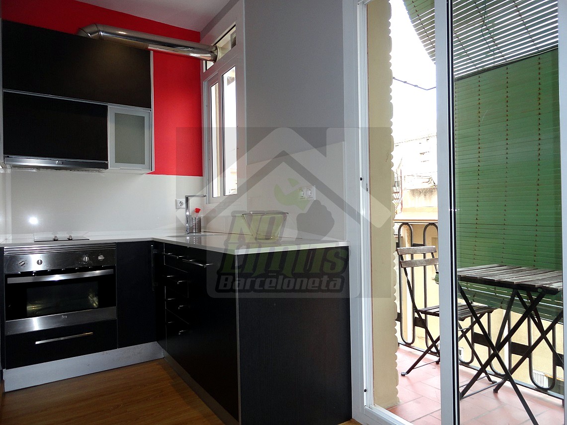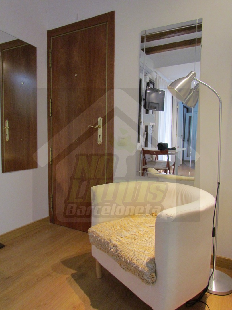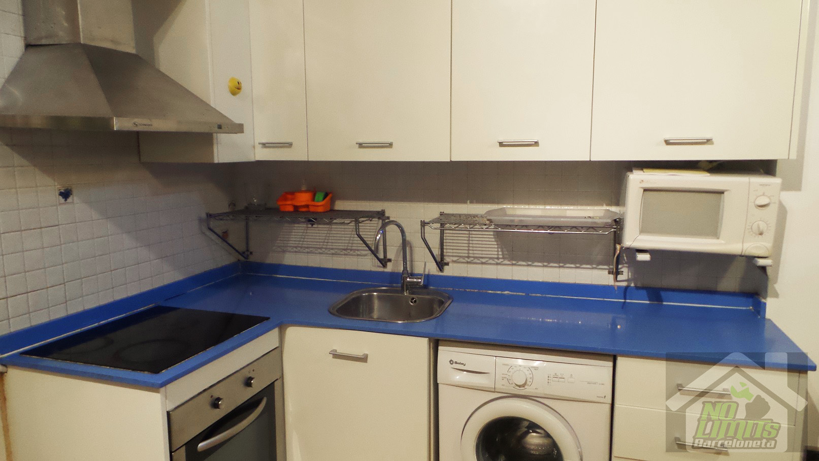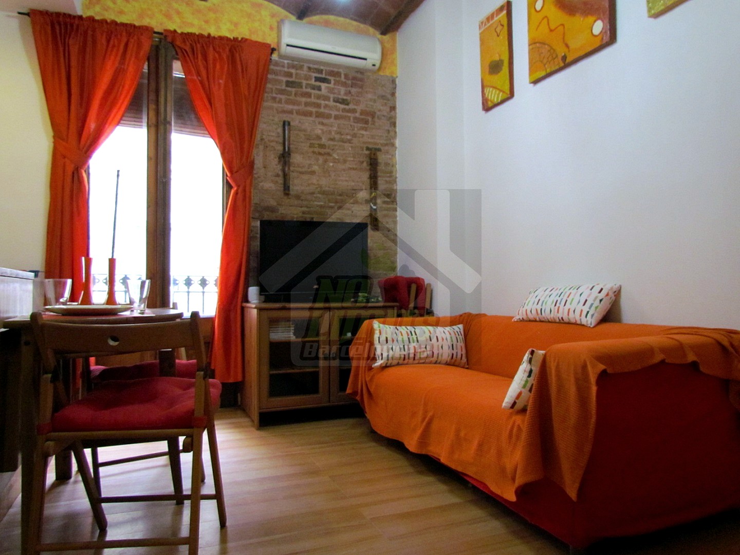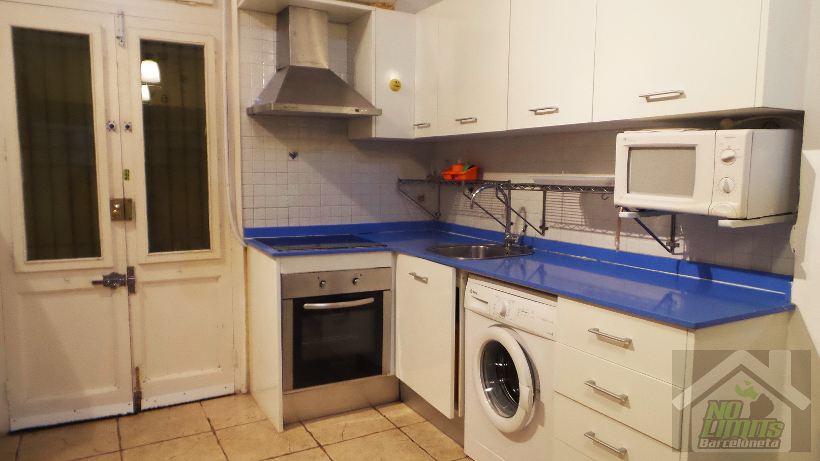 Good flat with 1 double room located near the Barceloneta Market, with all kind off shops and services around. American kitchen, totally equipped (including oven and dishwasher). Saloon with sofa bed, a/c and TV. Bathroom is in good shape. Small room with laundry machine and cleaning accessories. 4th floor without elevator.