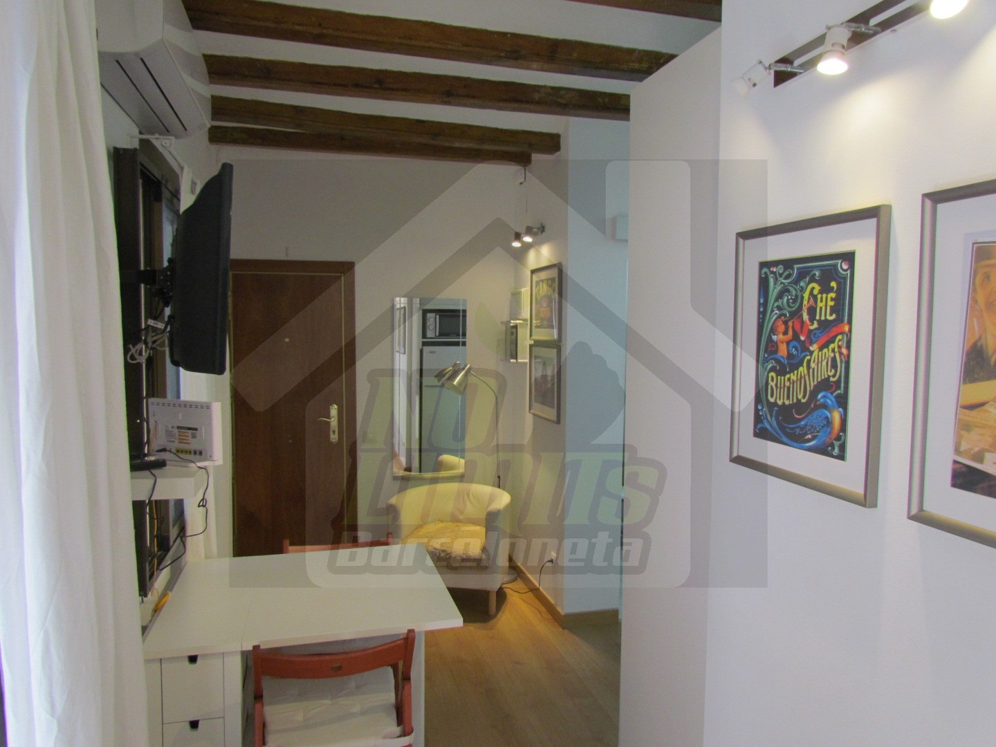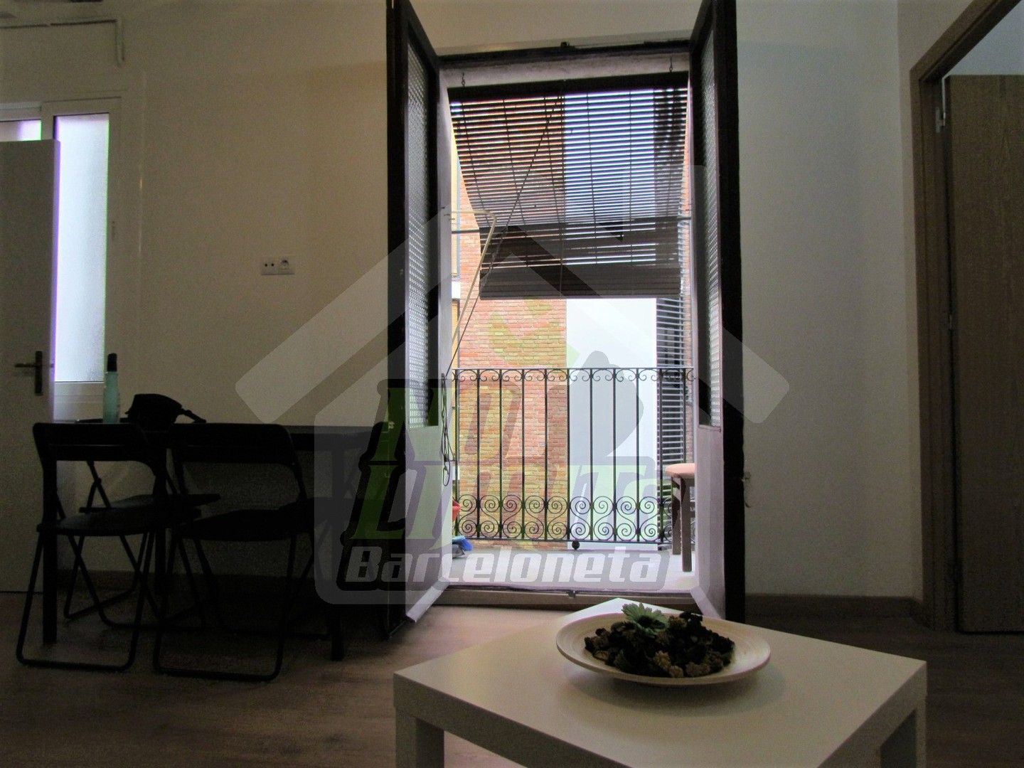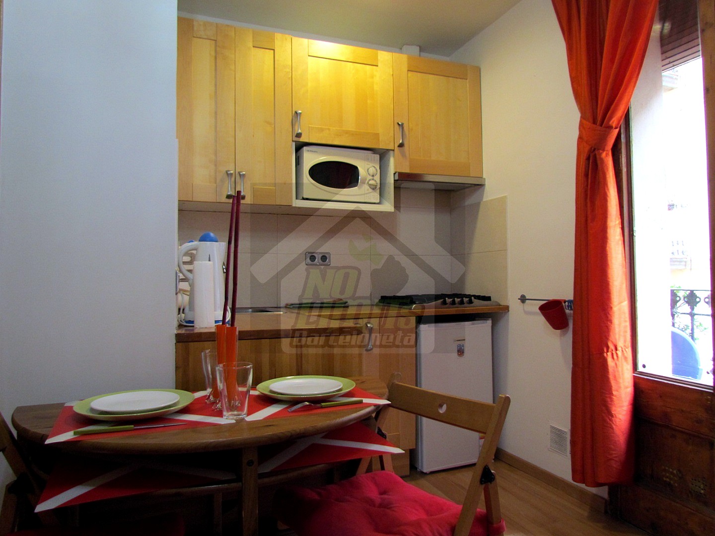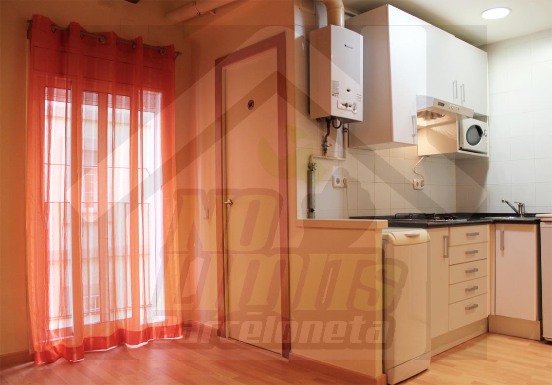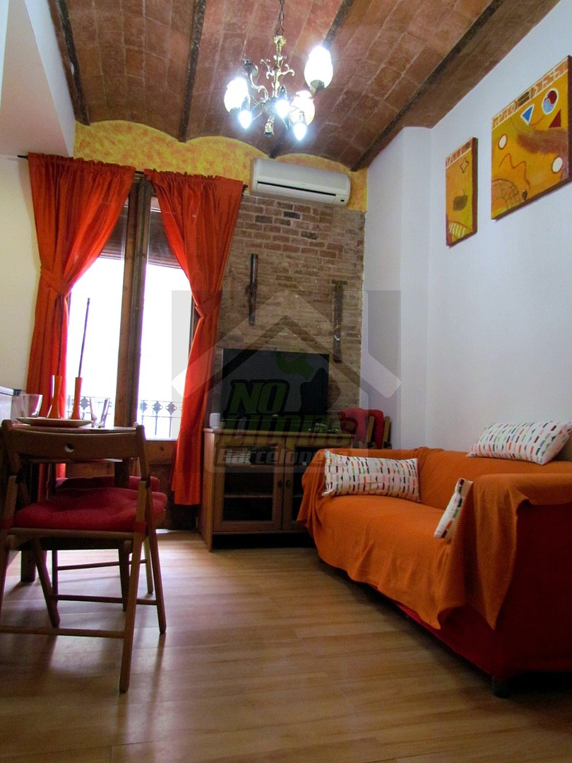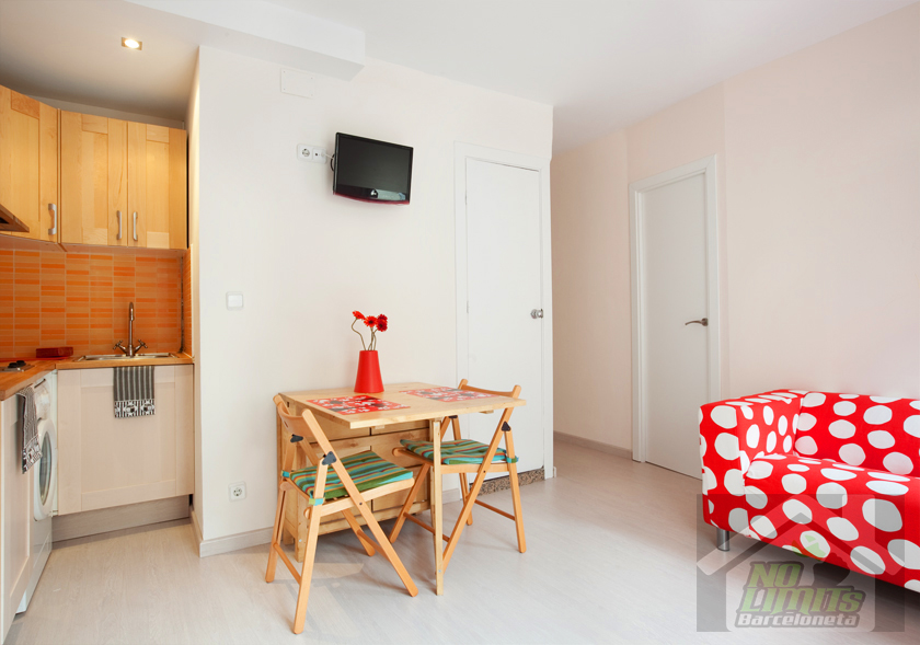 Good flat with 1 double room located near the Barceloneta Market, with all kind off shops and services around. American kitchen, totally equipped (including oven and dishwasher). Saloon with sofa bed, a/c and TV. Bathroom is in good shape. Small room with laundry machine and cleaning accessories. 4th floor without elevator.