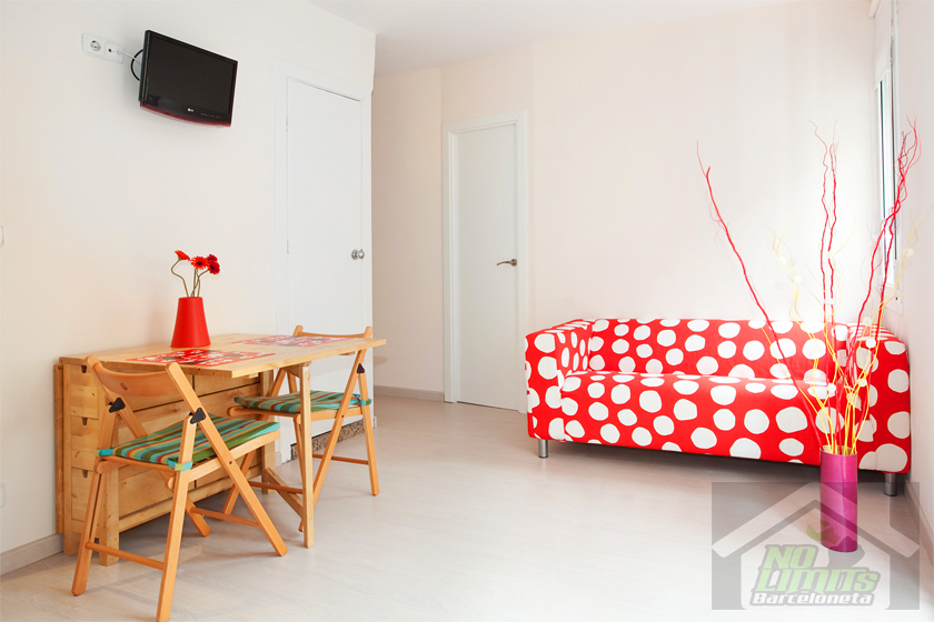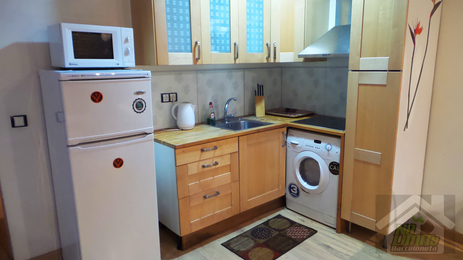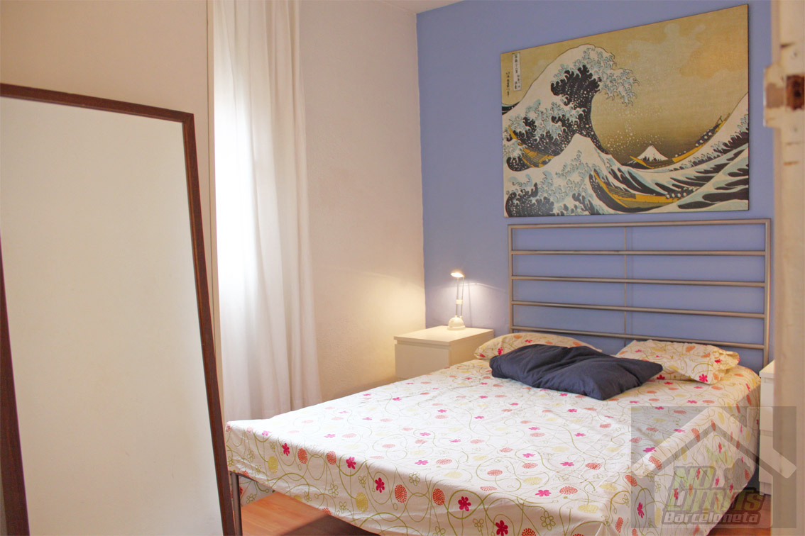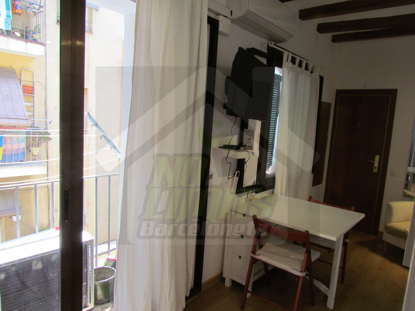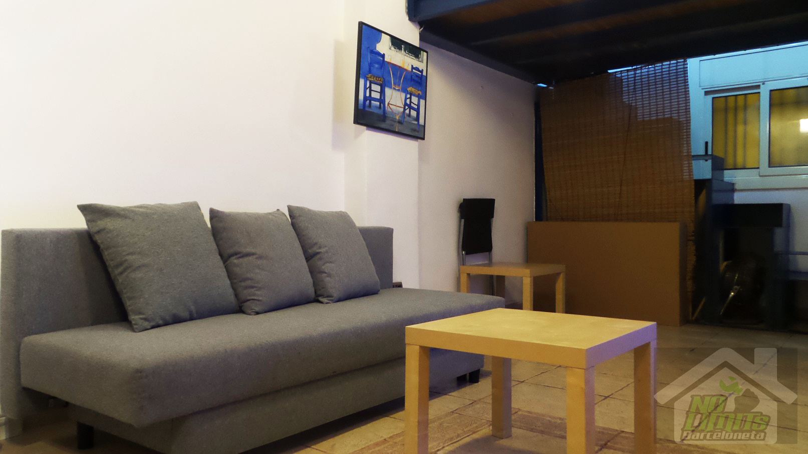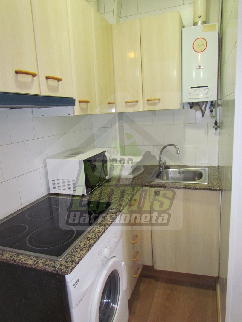 Good flat with 1 double room located near the Barceloneta Market, with all kind off shops and services around. American kitchen, totally equipped (including oven and dishwasher). Saloon with sofa bed, a/c and TV. Bathroom is in good shape. Small room with laundry machine and cleaning accessories. 4th floor without elevator.