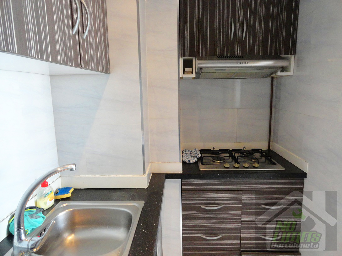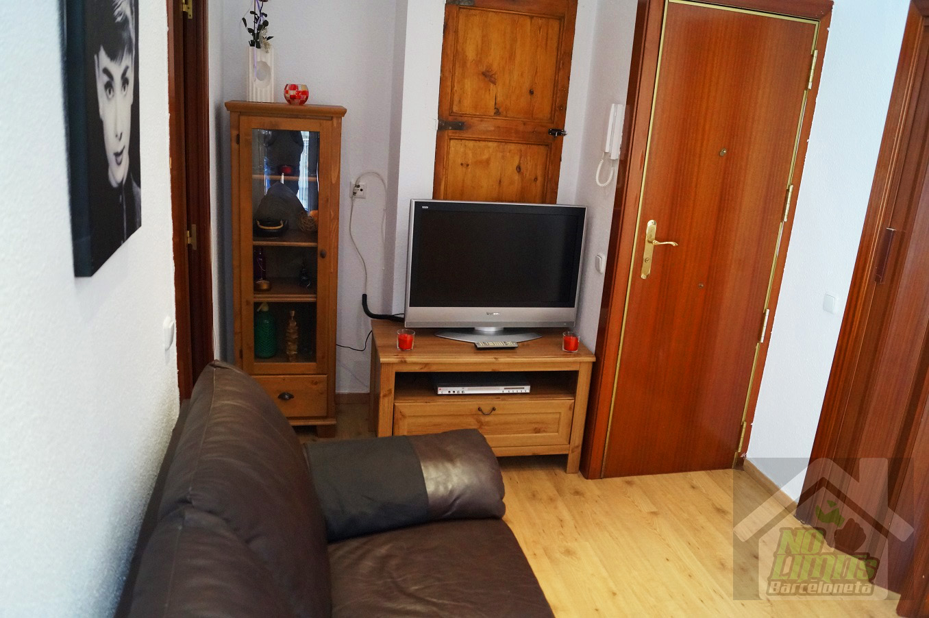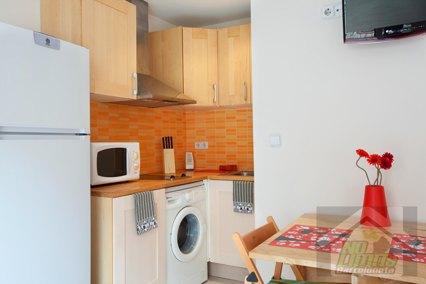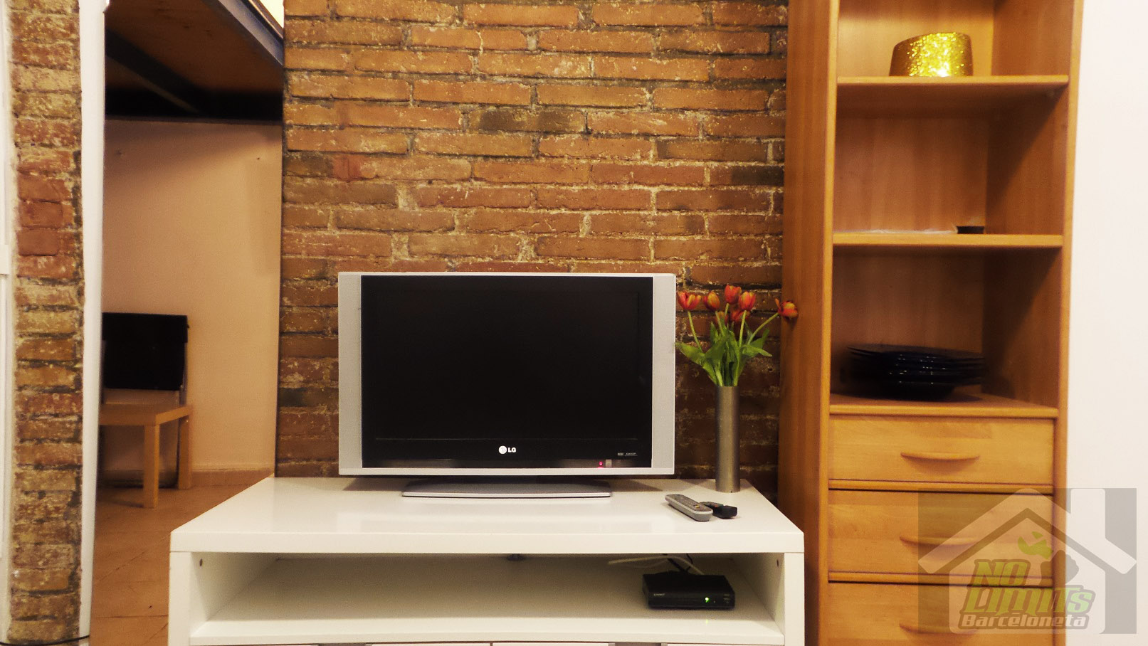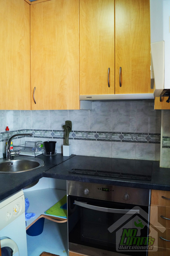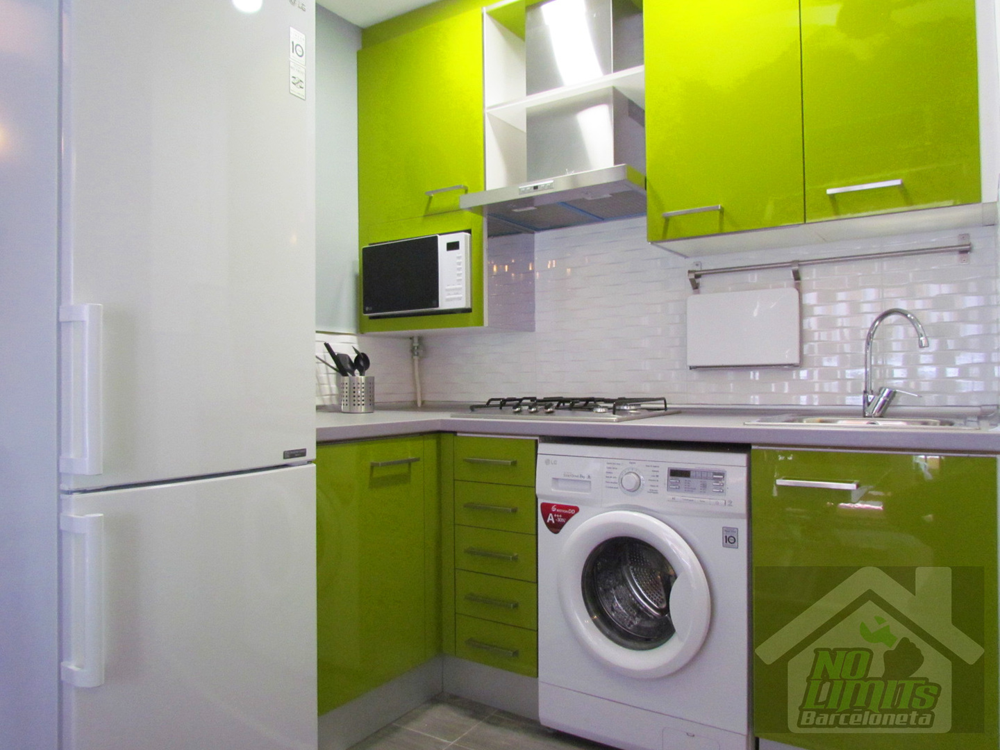 Good flat with 1 double room located near the Barceloneta Market, with all kind off shops and services around. American kitchen, totally equipped (including oven and dishwasher). Saloon with sofa bed, a/c and TV. Bathroom is in good shape. Small room with laundry machine and cleaning accessories. 4th floor without elevator.