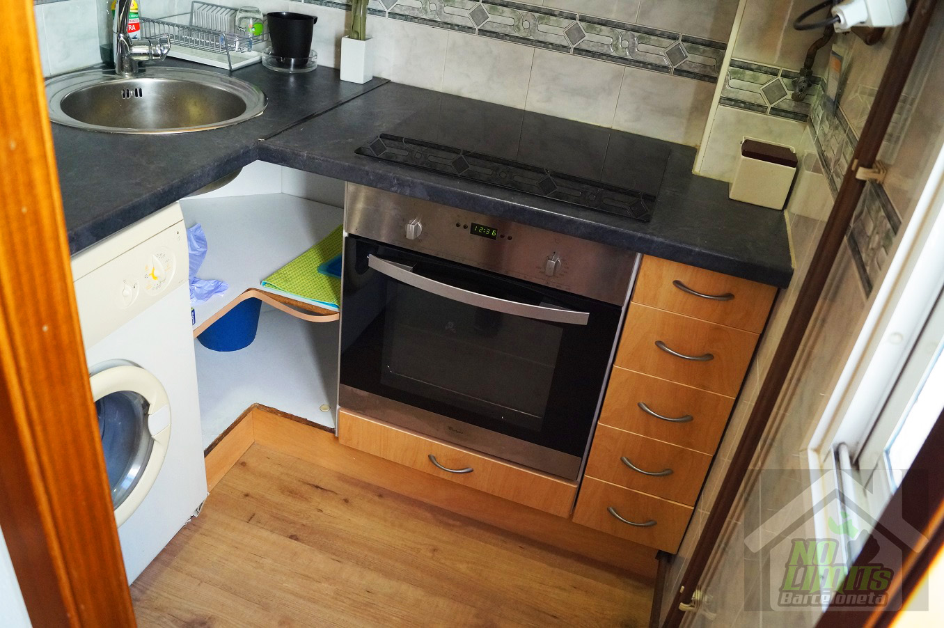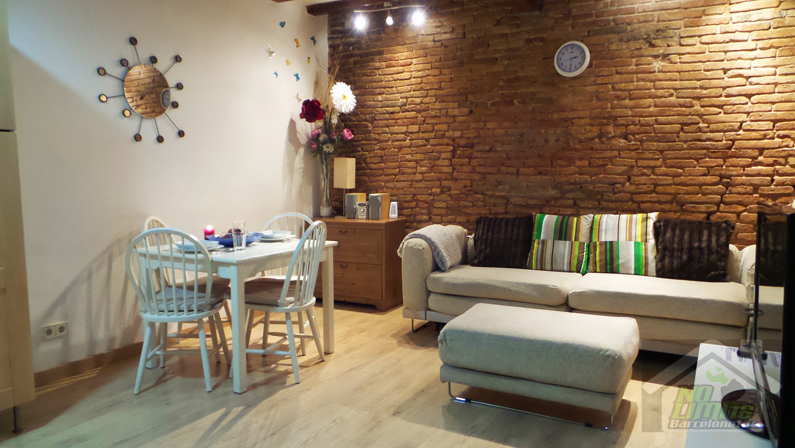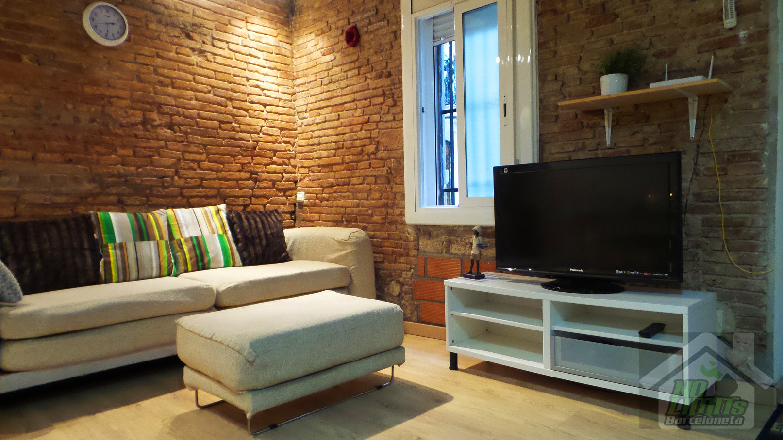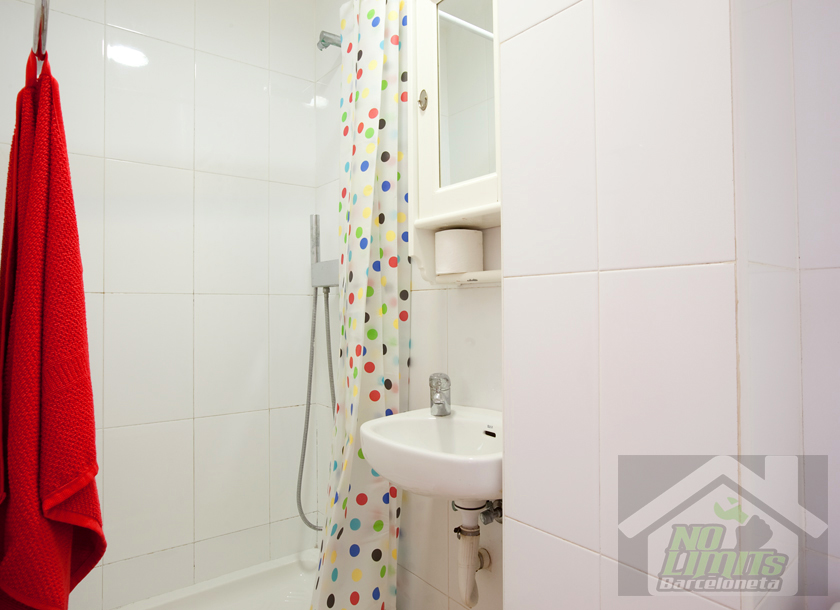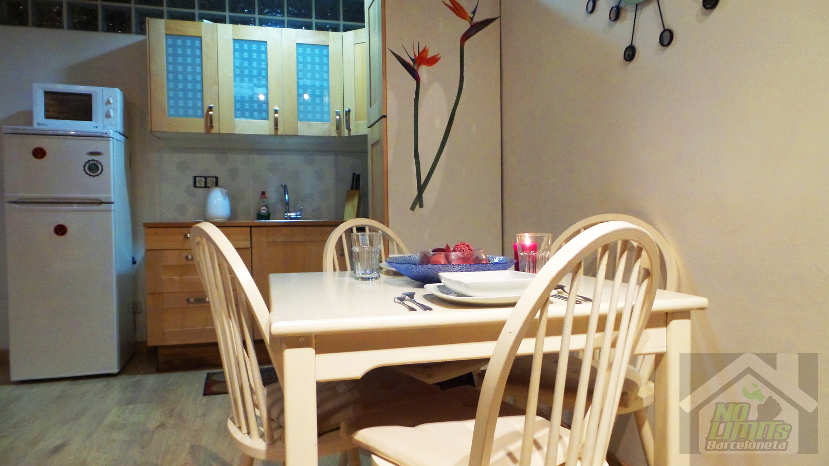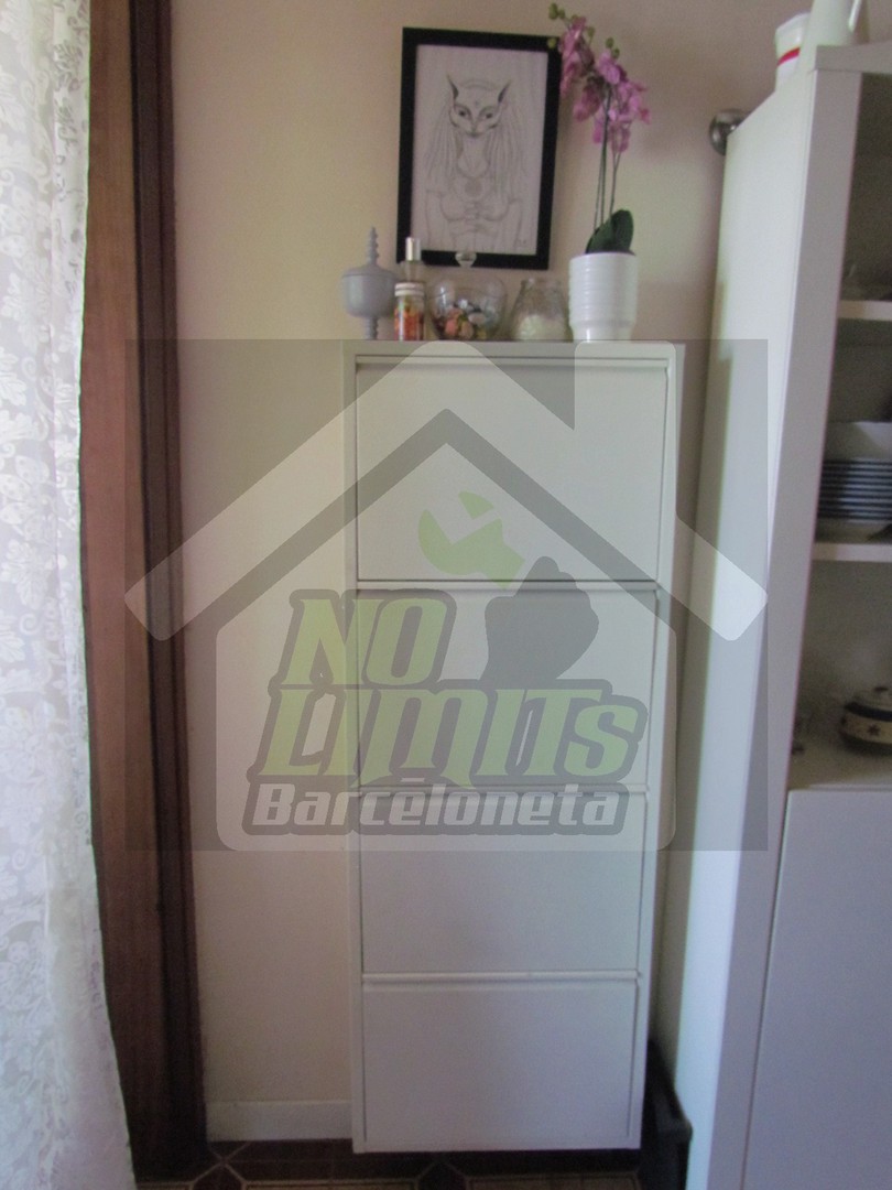 Good flat with 1 double room located near the Barceloneta Market, with all kind off shops and services around. American kitchen, totally equipped (including oven and dishwasher). Saloon with sofa bed, a/c and TV. Bathroom is in good shape. Small room with laundry machine and cleaning accessories. 4th floor without elevator.