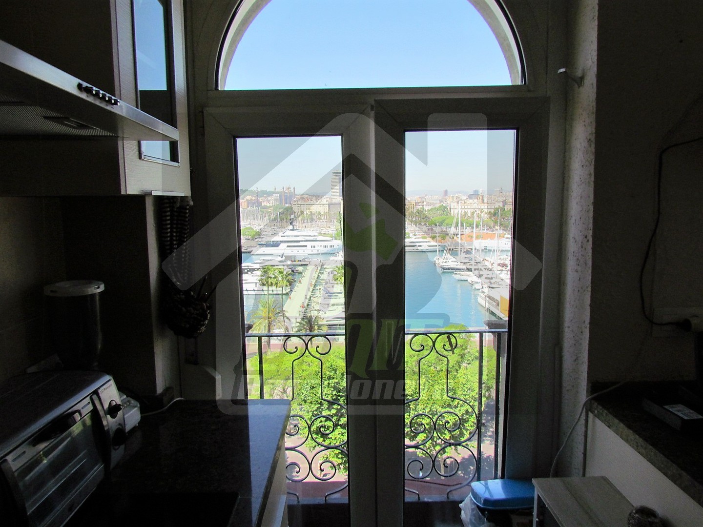 Great flat with spectacular views to the port. Completely equipped with furniture and appliances. Two double rooms with bed, closet and windows overlooking the port, lots of light and ventilation. Laundry/box rooms with space for storage. Ample bathroom in good shape. A/C, security door. American kitchen and saloon surrounded with windows with unblock view to Paseo Joan de Borbon, Port and most of Barcelona. Access to ample terrace perfect to sunbathing and relax. Fifth floor with elevator, wide access and halls.