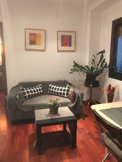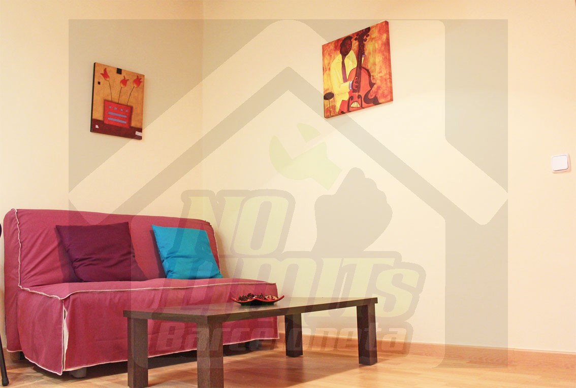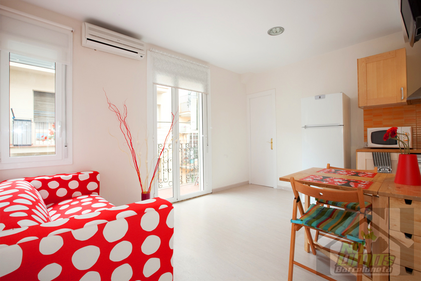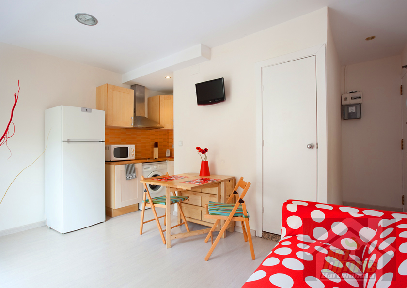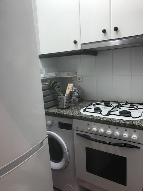 Nice flat with one double room completely equipped and furnished. Saloon with American kitchen equipped with appliances; a/c; sofa bed; table for four. Small balcony to a quiet street. Very close to the supermarket and just a short stride to the metro station. Second floor without elevator.
