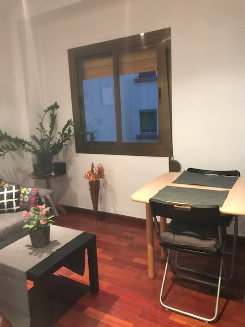Bonito piso de una habitación doble totalmente equipada y amoblada. Salón comedor con cocina americana con electrodomésticos; aire acondicionado, sofá cama y mesa para cuatro personas. Balcón hacia calle con poca circulación de coches. Muy cerca del mercado y a pocos minutos de la estación de metro. Segundo piso sin ascensor.