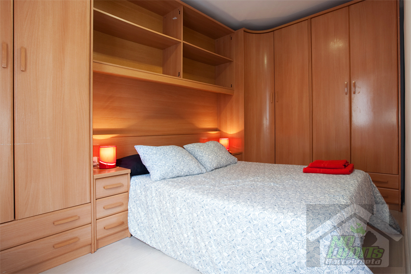 Nice apartment with two rooms. Main room with bed and ample closet. Single room with bed and small closet. Both with windows. Livingroom with sofa, table for 4, a/c; American kitchen with appliances. Small balcony, very sunny and ventilated. Located close to the beach.