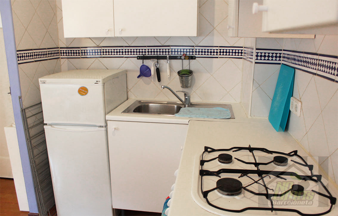 Ground floor apartment minutes from the beach 35m2, 1 double bedroom duplex, high ceilings, living room, tv. built-in kitchen, refrigerator, oven, microodas, kitchenware, etc. Tile floors, aluminum frames, bathroom.