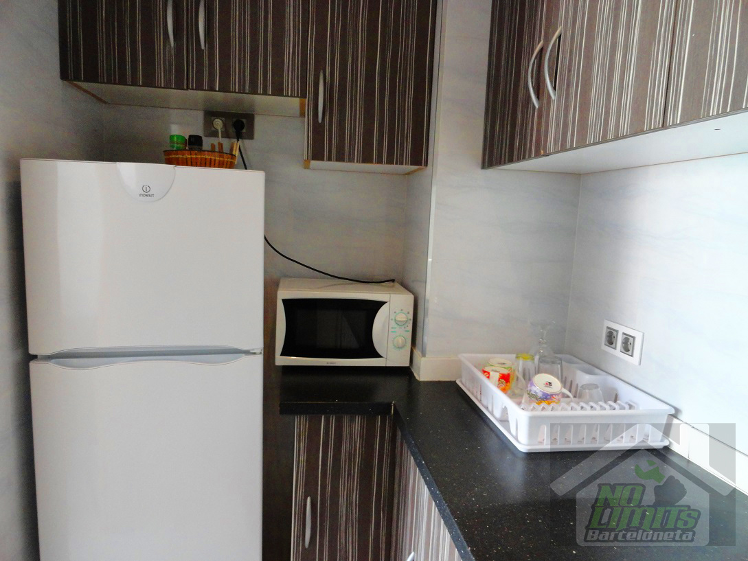 Apartamento en planta baja a pocos minutos de la playa 35m2, 1 habitacion doble en duplex, techos altos, salon comedor, tv. Cocina integrada y equipada, nevera, lavadora, horno, microodas, menaje de