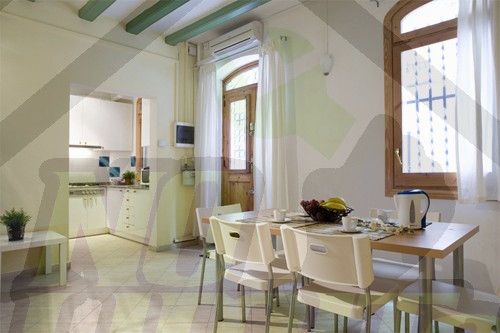 Really nice flat, totally equipped and furnished with 35 sq./m. Double room with fix closet an access to the balcony. Saloon with extendible table, American kitchen, TV, sofa and a/c (heat/cold). Balcony with chairs and table perfect to have some coffee or al fresco breakfast . Luminous and ventilated, 3rd. floor.